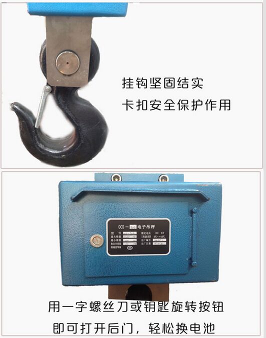 電子吊秤主要由高強度吊鉤、卸扣、全鋼外殼、前蓋、后蓋、傳感器和保護板等部分組成,內置電池,直接在后蓋進行充電,吊鉤、卸扣均進行表面鍍鎳處理,全鋼外殼采用****腐工藝處理,整秤外形美觀,安全耐用,旋轉吊鉤設計,**正面讀數,傳感器兩側設有保護板,安全**。